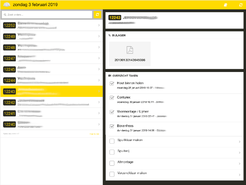 In general, it is assumed that one day is required for each task to be completed. If an order requires seven steps to be completed, in general it will need a week’s worth of work. All of this can be monitored in the planning part of the application.