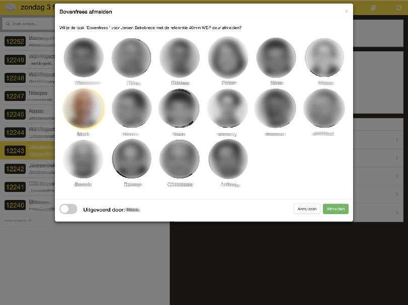 The tablets are used by the carpenters. In general, these craftsmen and women love woodworking, computers… not so much. That is why the interface had to be very simple and the number of steps to change/report something had to be as few as possible.
